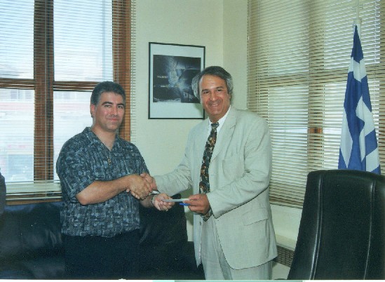Kontolios presents check to Hosp. Admin. Nick Christou |